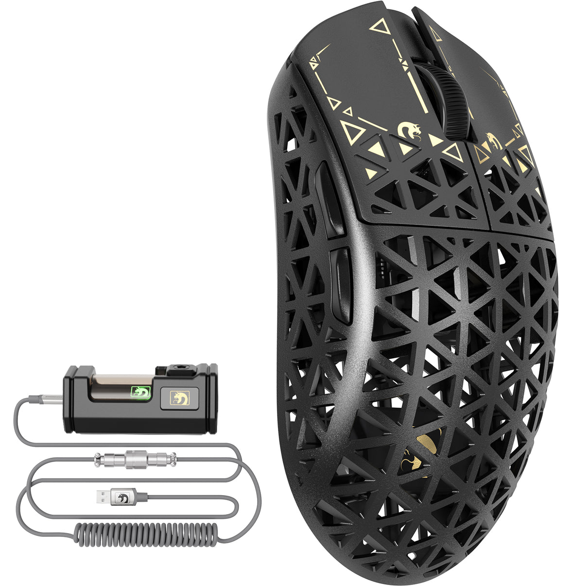 The MAMBASNAKE M5 is the most solid light weight premium mouse I have ever used. It comes with extra skates and grip tape. I personally put my own skates on it and it's a really nice mouse. It would take an act of God to break this thing. The wireless works great. I have to charge it once a week. I would not recommend having drinks around it as it's components are completely exposed. The driver and app for the mouse is super easy to use. It's kinda ridiculous how good this mouse is for the price
